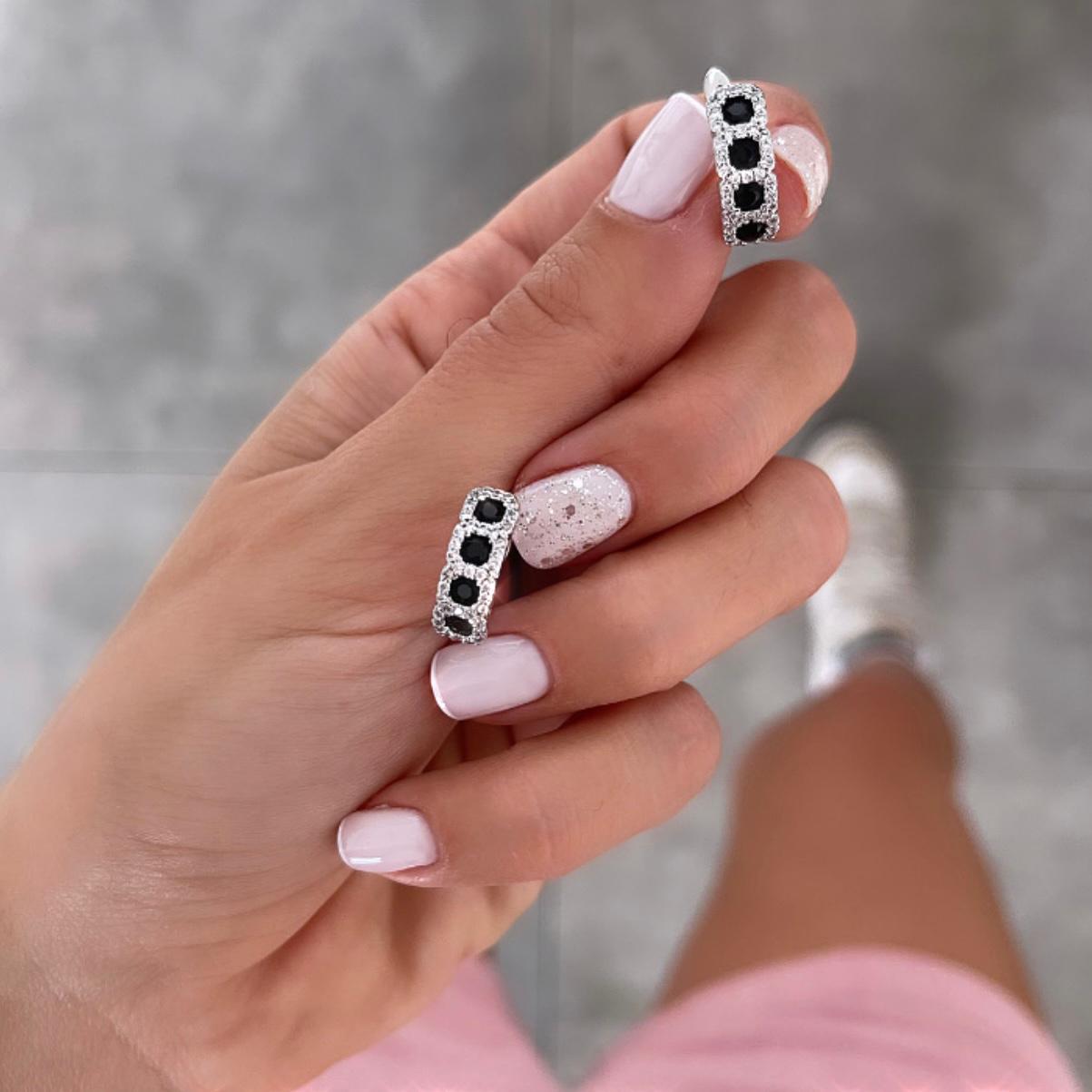 עגילים טין 4 זירקונים שחור כסף