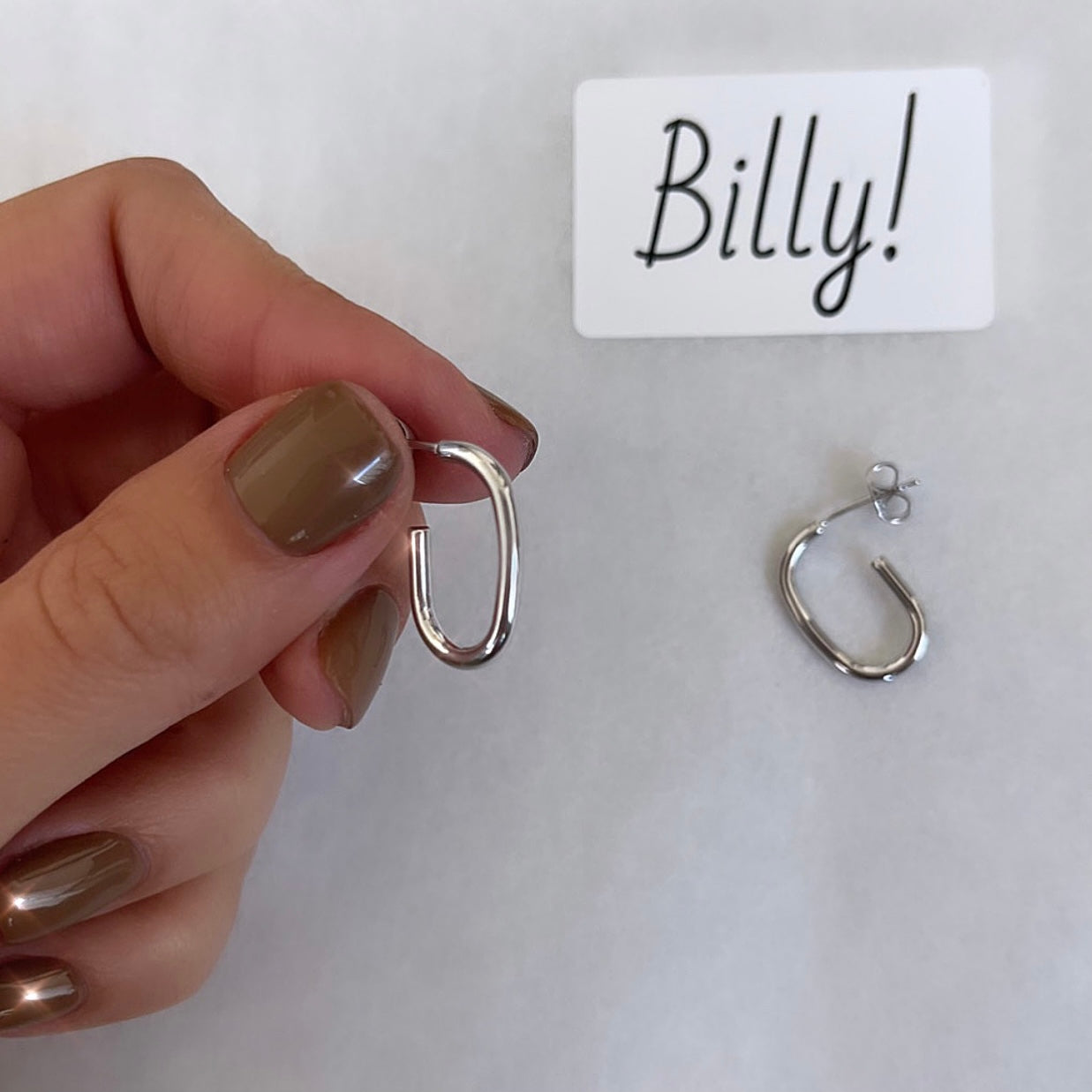 עגילים חישוק אליפסה חלק כסף