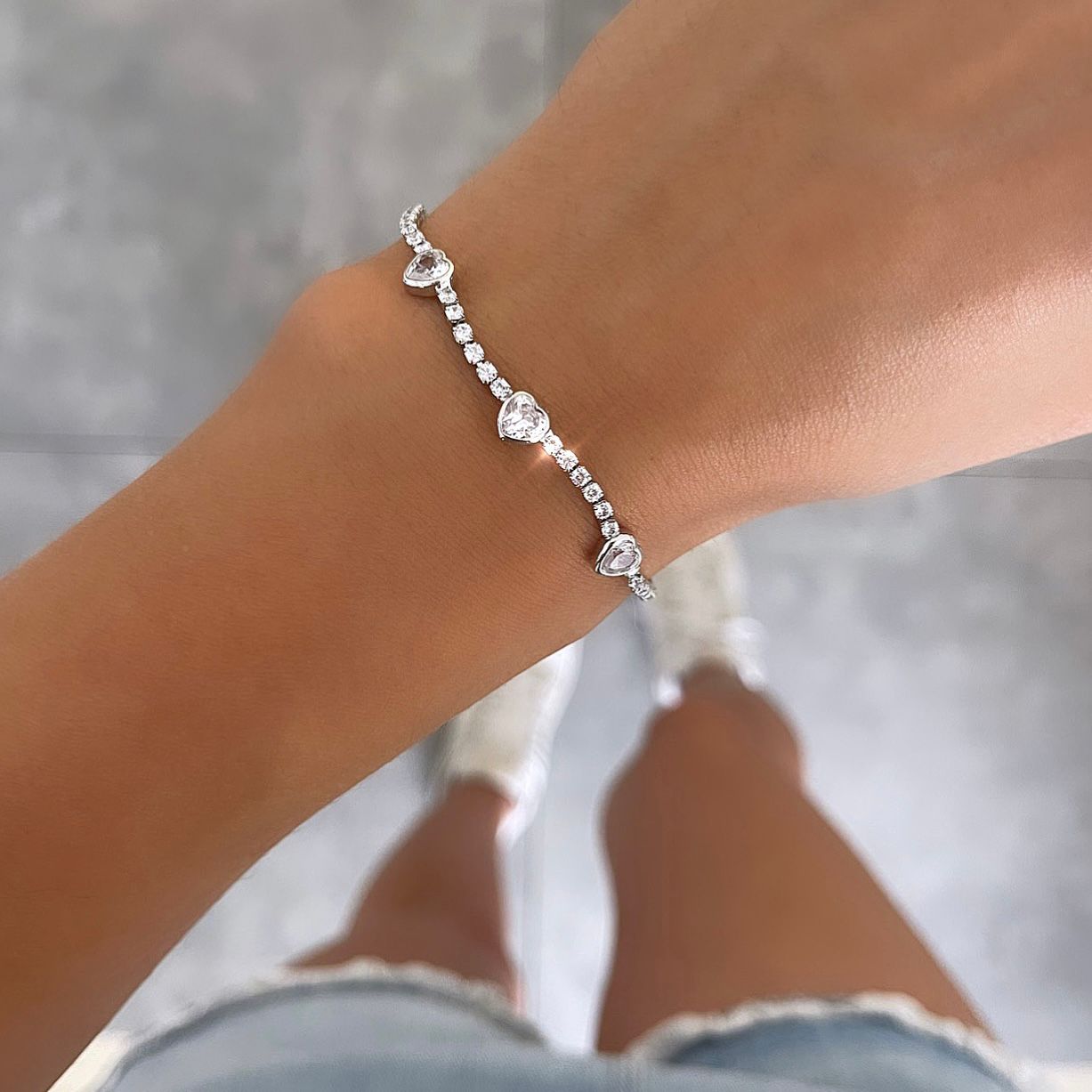 צמיד דין טניס 3 לבבות שקופות כסף