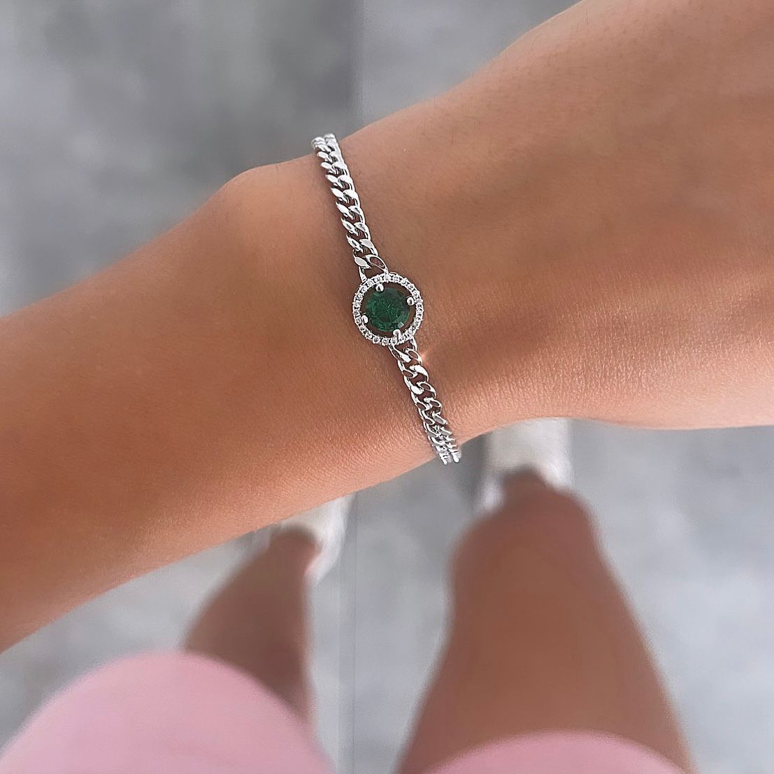 צמיד יו גורמט סוליטר ירוק כסף