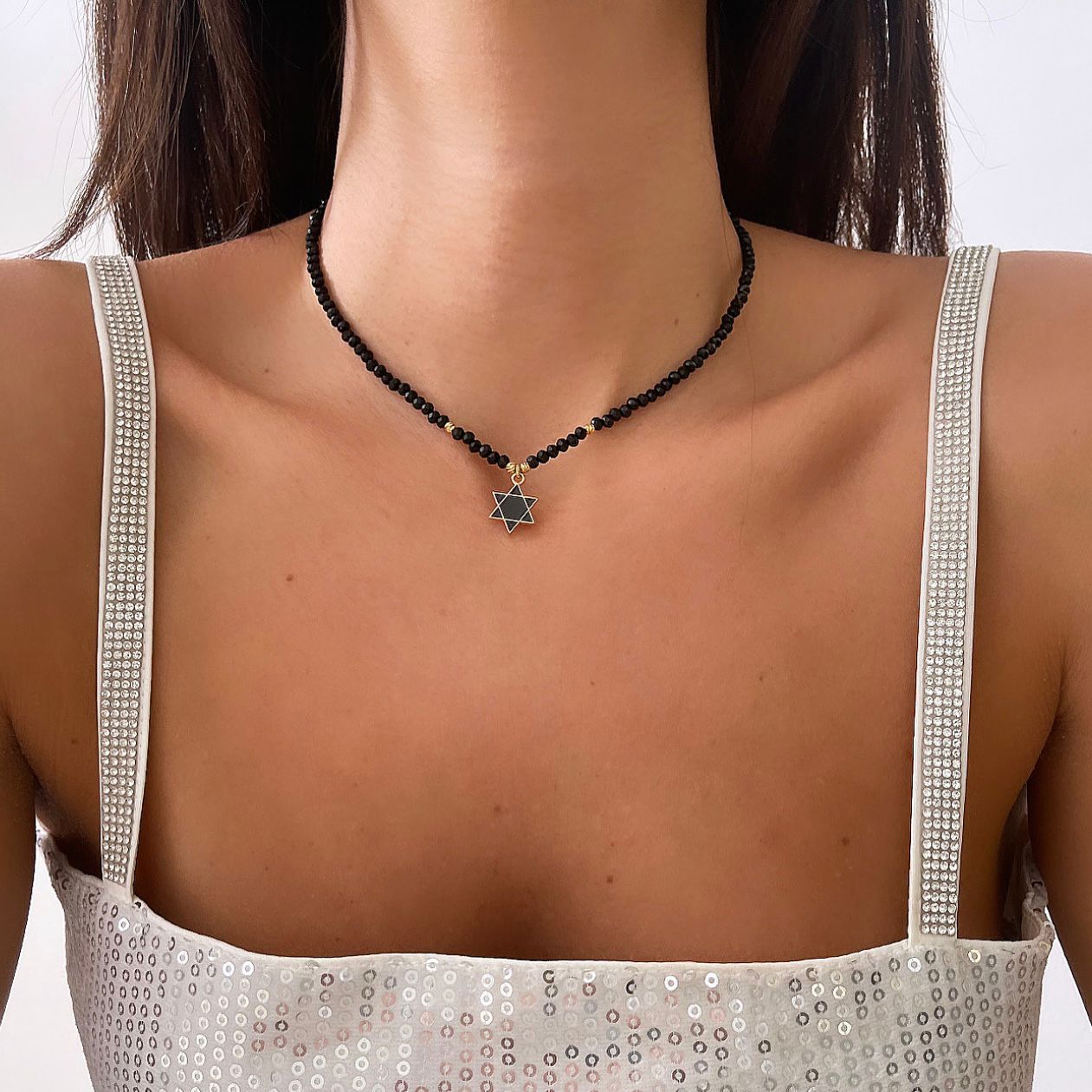 שרשרת שחורה מלובן שחורֿ מגן דוד זהב