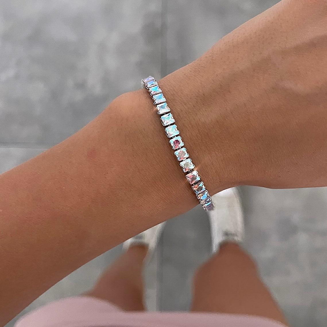 צמיד ֿ זירקונים מרובעים אולטרא כסף