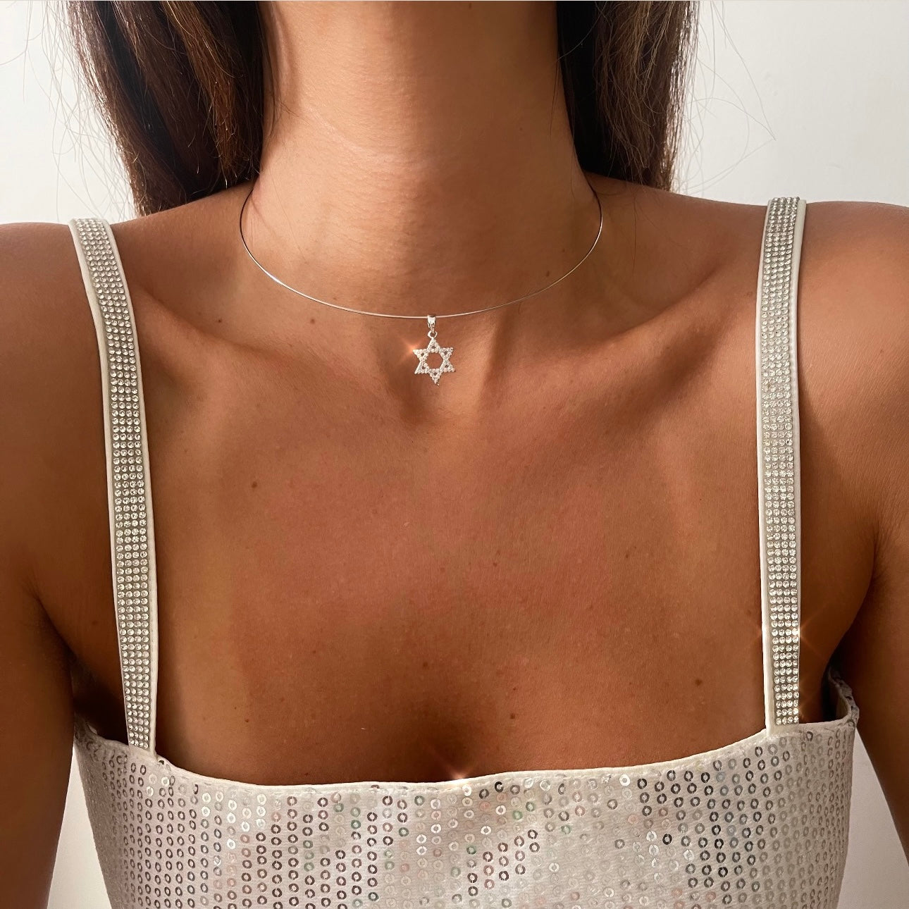 שרשרת קשיח חוט תליון מגן דוד משובץ כסף
