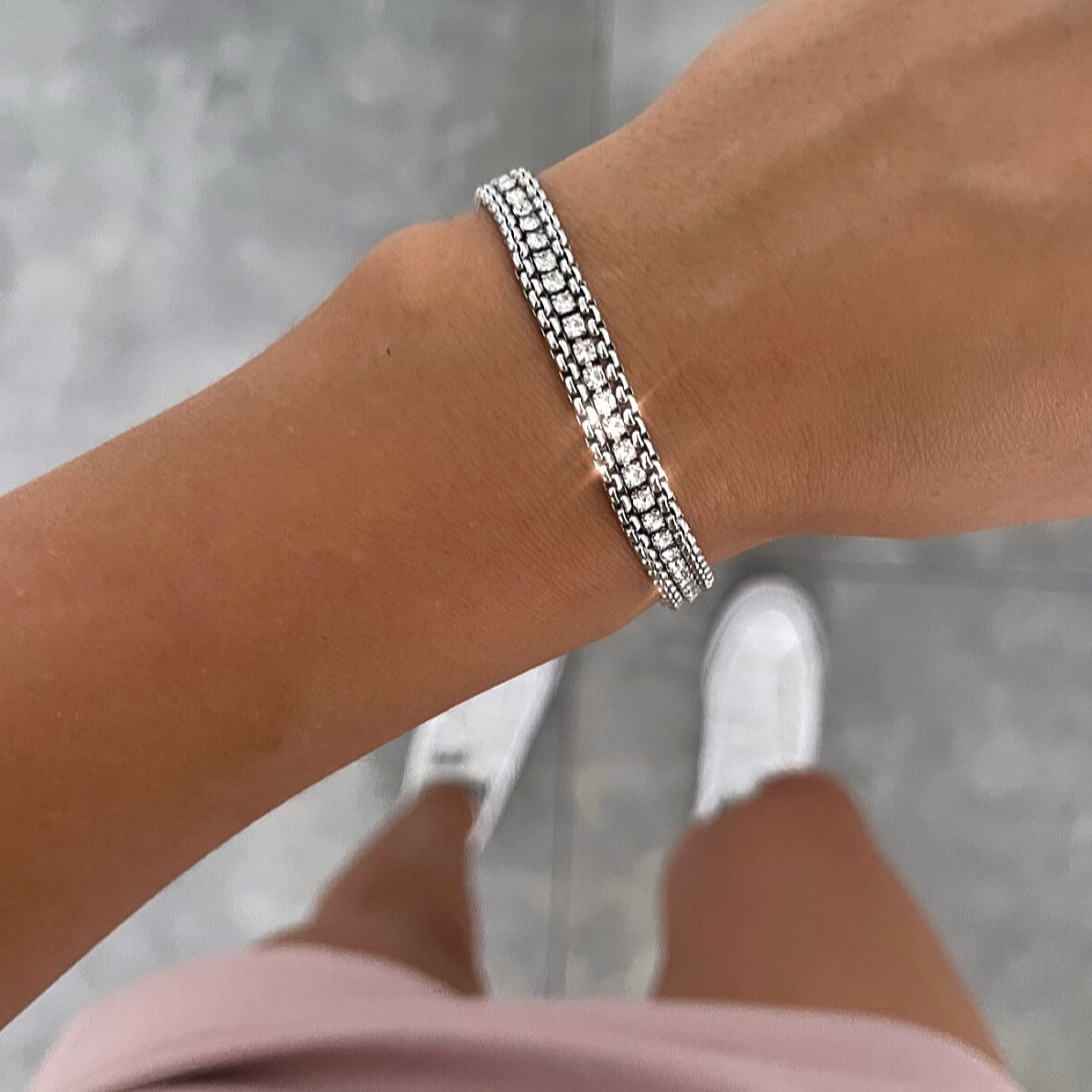 צמיד רכבת זירקונים שקוף כסף
