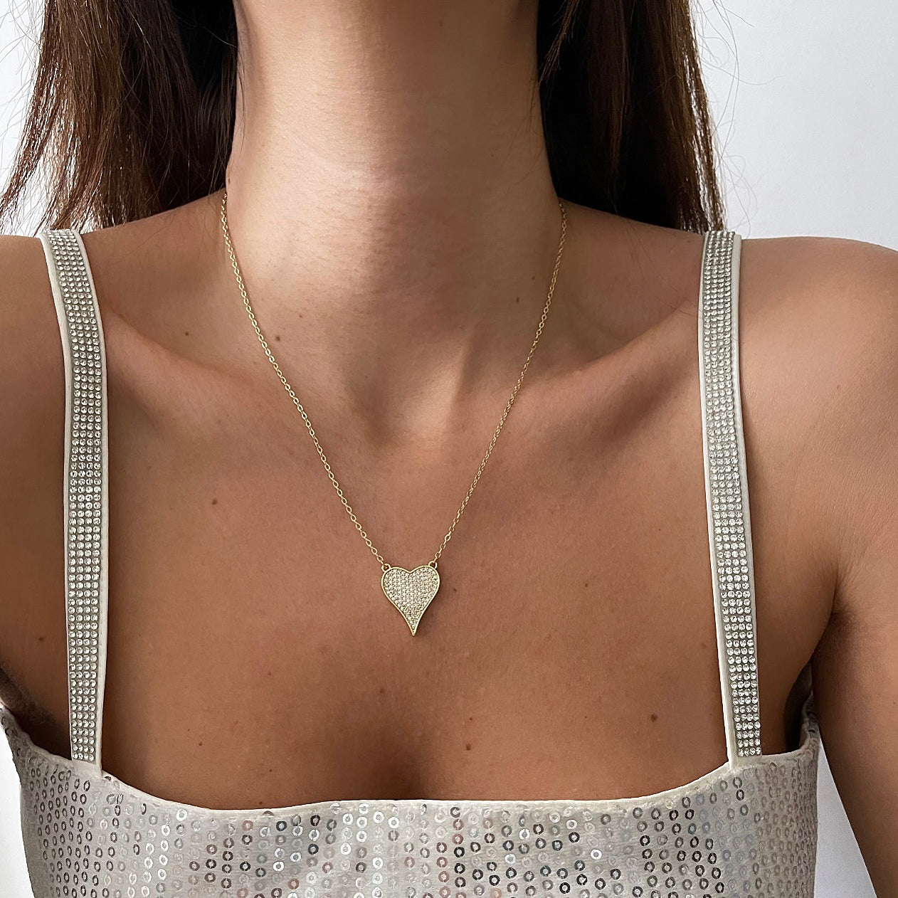 שרשרת לב שטוח שפיצי חדש זהב