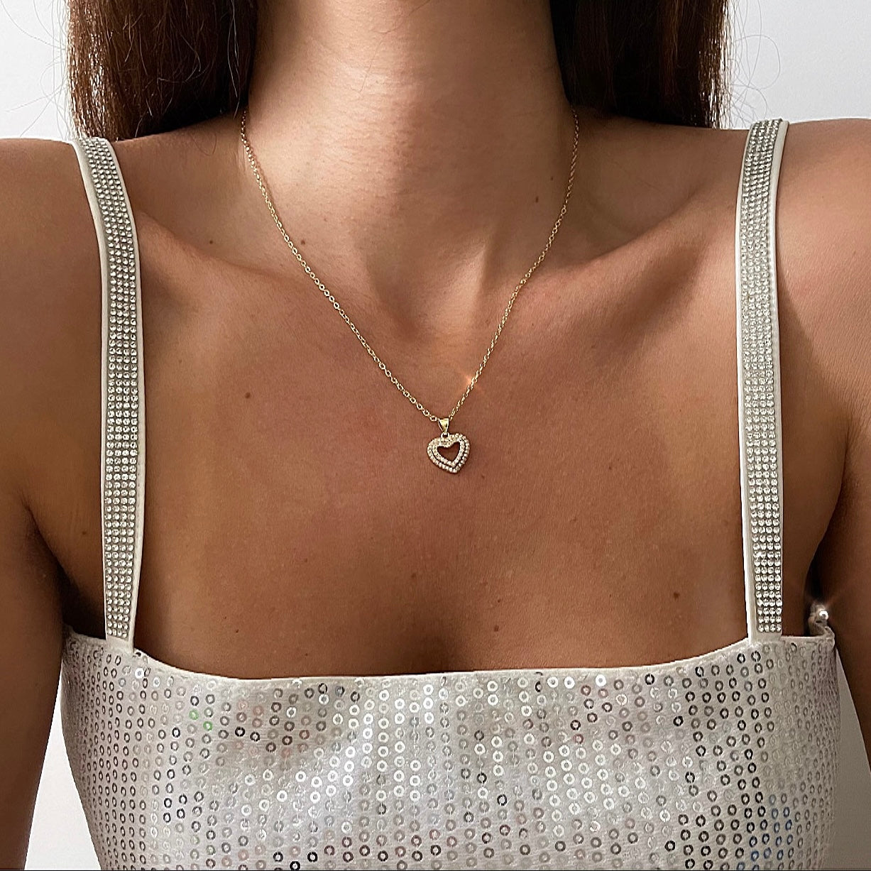 שרשרת לב חלול בתוך לב חלול צמוד משובץ זהב