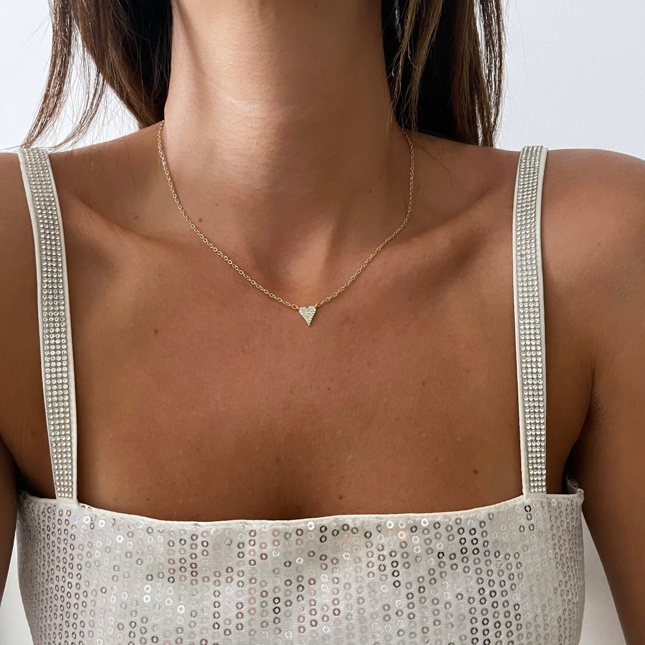 שרשרת לב שפיצי קטן קטן משובץ תפוס זהב